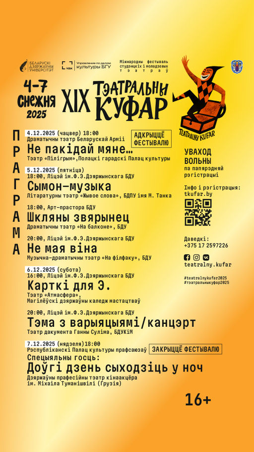 . XIX Міжнародны фестываль студэнцкіх і моладзевых тэатраў "Тэатральны куфар, БДУ", 4-7 снежня, 2025